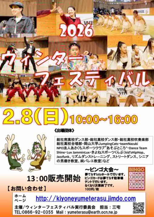 きよね夢てらすの会場でダンスやバンド、吹奏楽の演奏など多彩なパフォーマンスを見ることができる「ウィンターフェスティバル」が開かれますよ~!