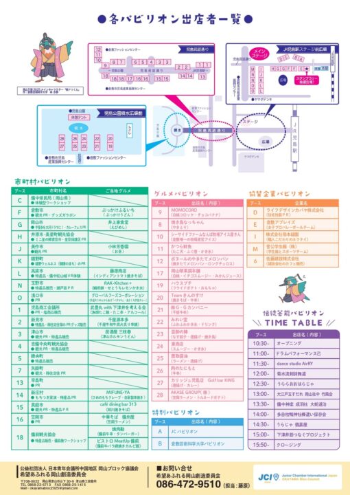 岡山県内の20市町村が出展する「市町村パビリオン」では、各地域の特産品や観光情報が紹介されます。