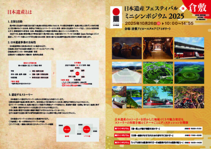 26日には「酒」「古墳」「シリアル型日本遺産のあり方」をテーマにしたミニシンポジウムも開催。日本遺産を活用した地域活性化や魅力発信について専門家が議論します。