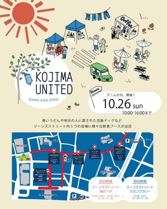 「つながり」と「結束」をテーマにしたイベント「KOJIMA UNITED」が、10月26日に児島ジーンズストリートで初めて開催されます。