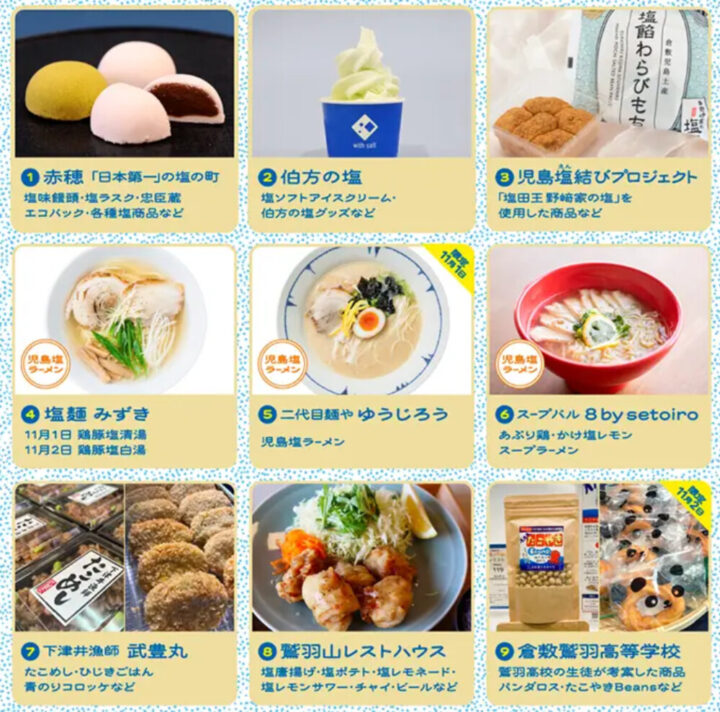 ラーメンやからあげ、スイーツなど瀬戸内の塩を使ったグルメを堪能できますよ!