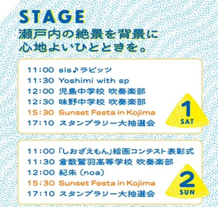 15時30分から同時開催の「Sunset Festa in Kojima」も合わせてお楽しみください♪
