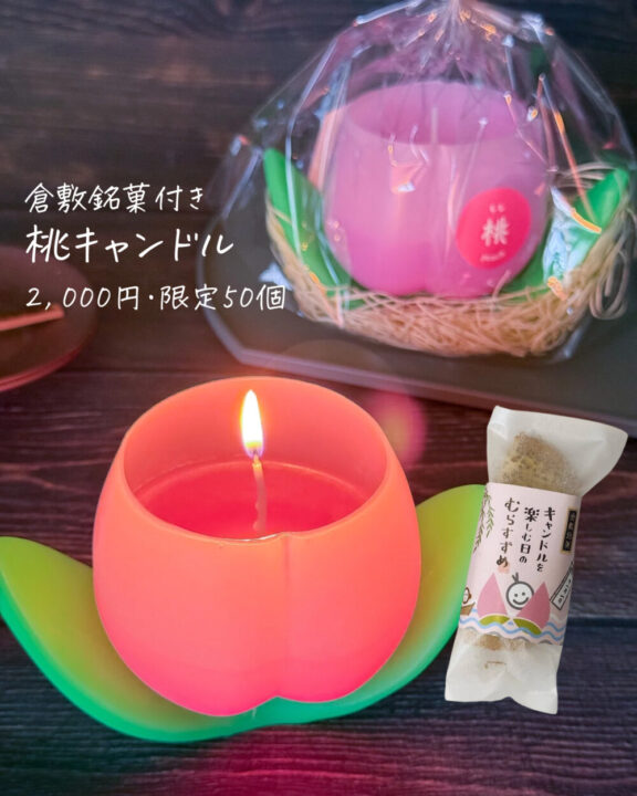 銘菓付き桃キャンドル販売 9:00~19:00 (くらしき美味処)