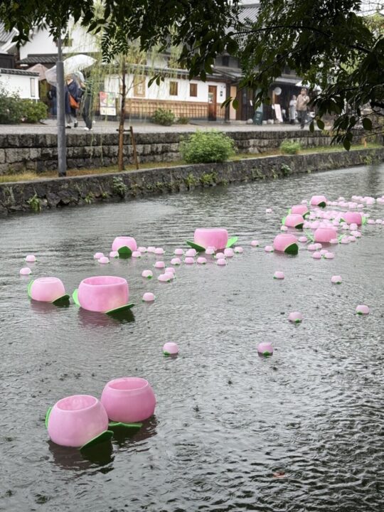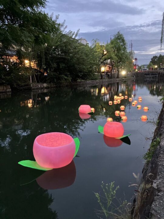 倉敷川を彩る400個の桃キャンドル、どんぶらこ〜🍑