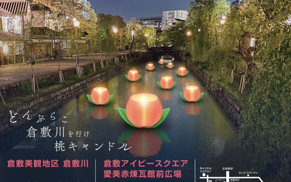 倉敷美観地区で桃キャンドルがどんぶらこ🍑「キャンドルを楽しむ日2025」イベント開催
