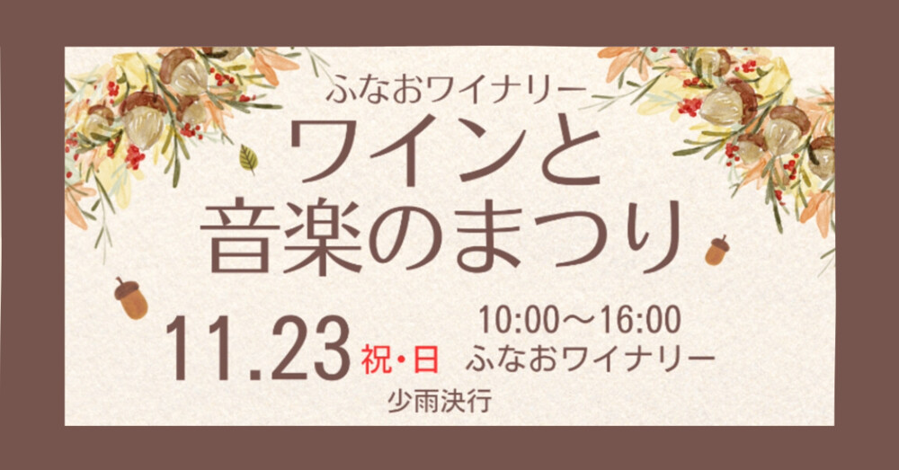2025年11月23日に倉敷市船穂町にあるふなおワイナリーで「ワインと音楽のまつり」が開催されます!