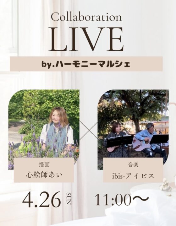 ギターとボーカルの2人ユニットです。演奏に合わせて心絵師あいさんがキャンバスに絵を描いてくださるんだとか!ライブペイントにも注目です!