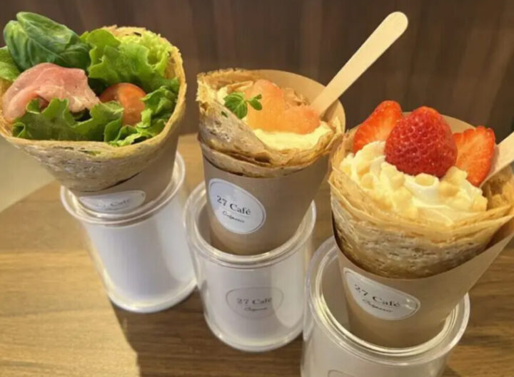 「27cafe creperie」は、素材の品質にこだわったクレープとアサイーボウルを提供するカフェ。健康的でありながら、満足感のある味わいが人気の秘密です🍓