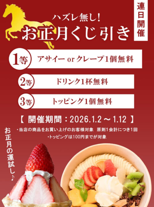 ぜひ、くじ引きイベントが開催されている2026年1月12日(月)までに訪れてみてくださいね~!✨