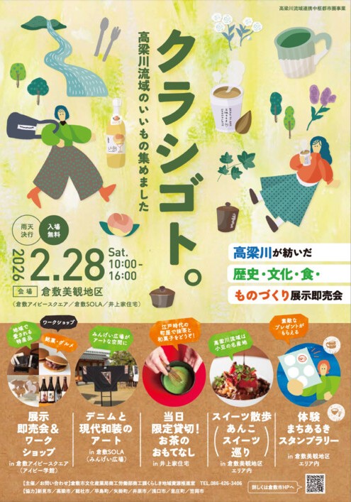 高梁川流域の魅力を再発見できるイベント「クラシゴト。」が、倉敷アイビースクエアをはじめとする倉敷美観地区周辺で2月28日に開催されます。