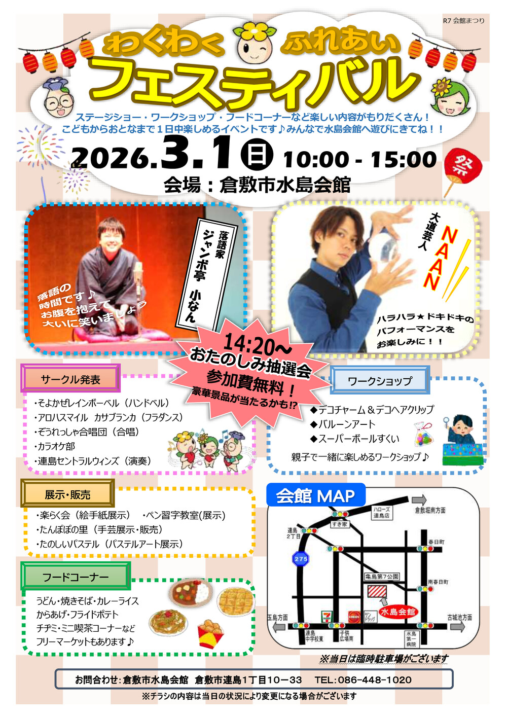 ワークショップや色とりどりのハンドメイド作品、そして子どもたちが大喜びするバルーンアートなど、家族みんなで楽しめるイベント「わくわくふれあいフェスティバル」が、倉敷市水島会館で開催されますよ🎈