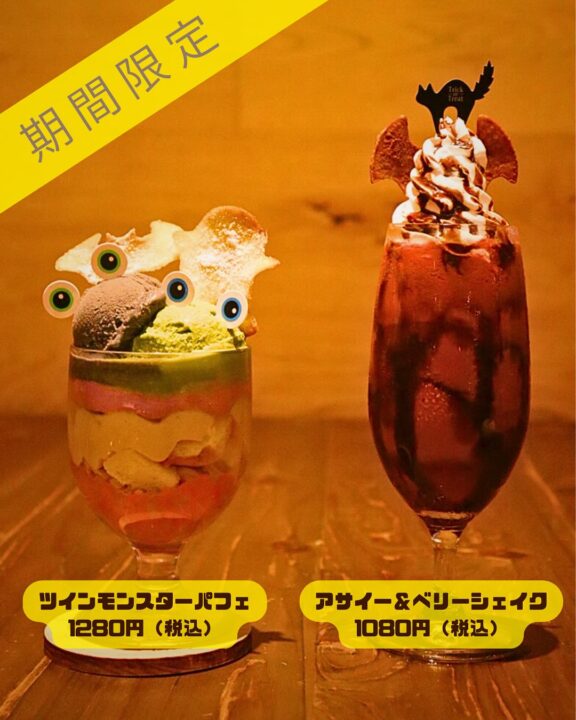 ハロウィン限定スイーツ第一弾は、モンスターが2体登場する「ツインモンスターパフェ」🎃