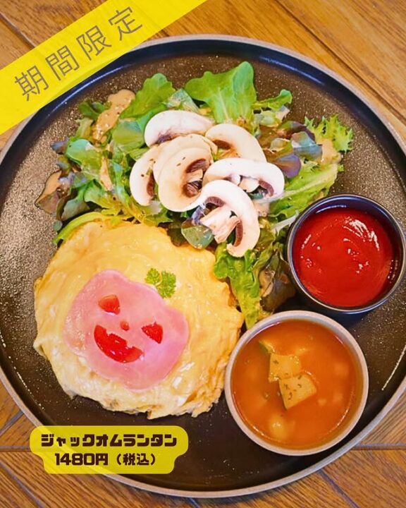 オムライスには地元「のだ初」の新鮮な卵を使用し、ハロウィンらしくカボチャのお化けがデザインされています🎃