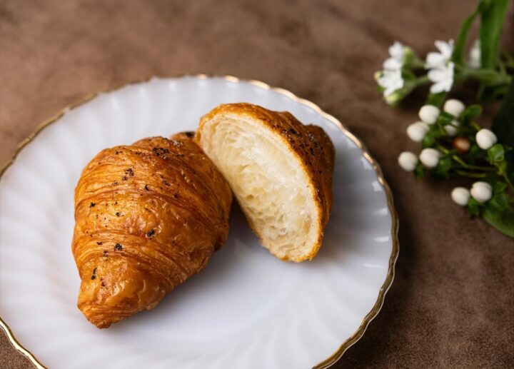 フランス産バター使用のソフトクロワッサンに黒トリュフ塩を乗せた、香りと深みのある贅沢な味わいだそう🥐