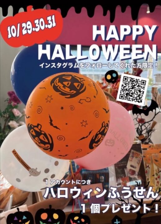 カフェ青山中庄店では、カフェ青山のInstagramをフォローした方全員に「ハロウィンふうせん」をプレゼントするキャンペーンを実施しています!