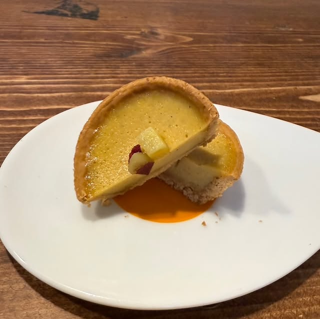 しっとりとしたタルト生地に、とってもなめらかなさつまいもプリン♪ほんのりバニラの香りもするような😳