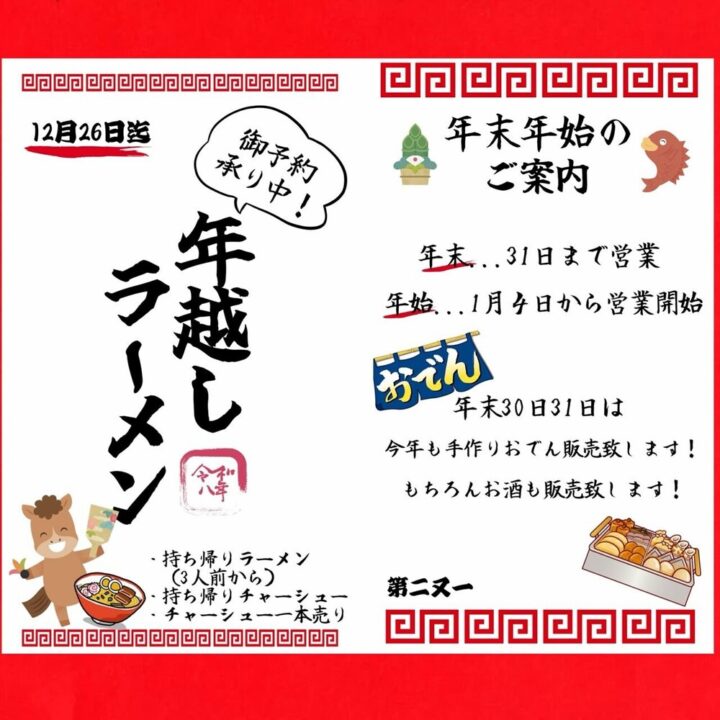 ぜひ、年末の食べ納めに「第二又一」のラーメンを存分に味わって下さいね~!