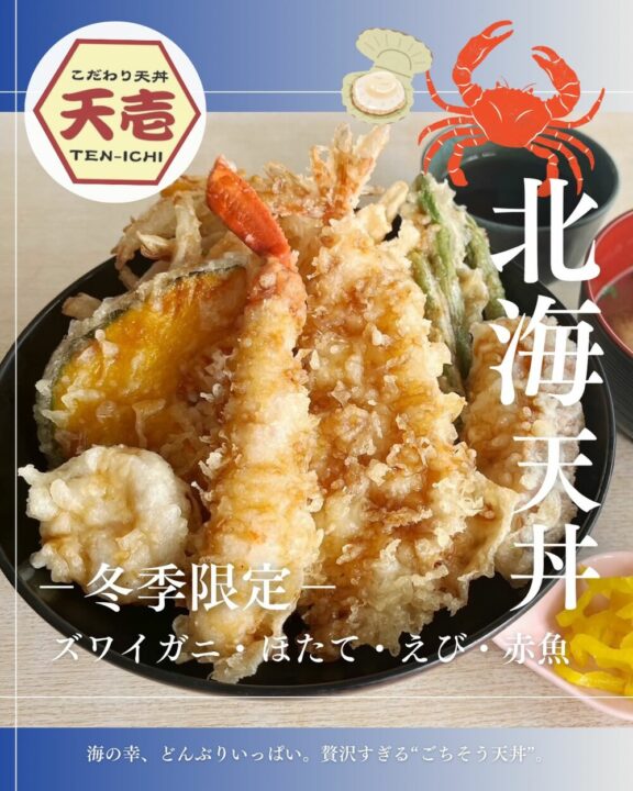 倉敷市笹沖にある「こだわり天丼 天壱 笹沖店」では、毎年大人気の冬季限定「北海天丼」を現在販売中です✨
