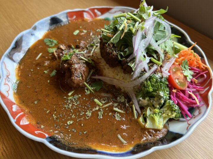 「カレーとコーヒーの店774ナナシ」は、2種合いがけのスパイスカレーが評判のお店。