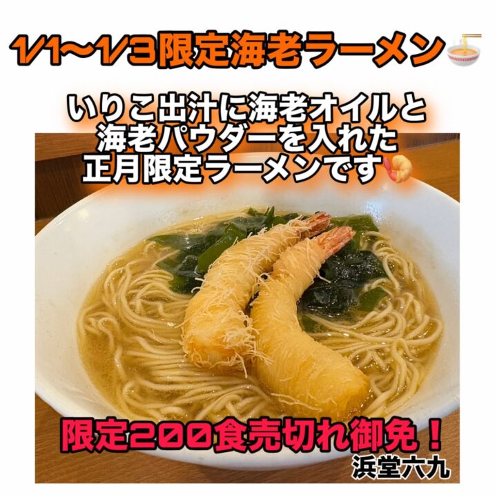 新年早々、倉敷市の人気ラーメン店「浜堂六九(はまんどろっく)」では、特別企画として「海老ラーメン」が登場します。