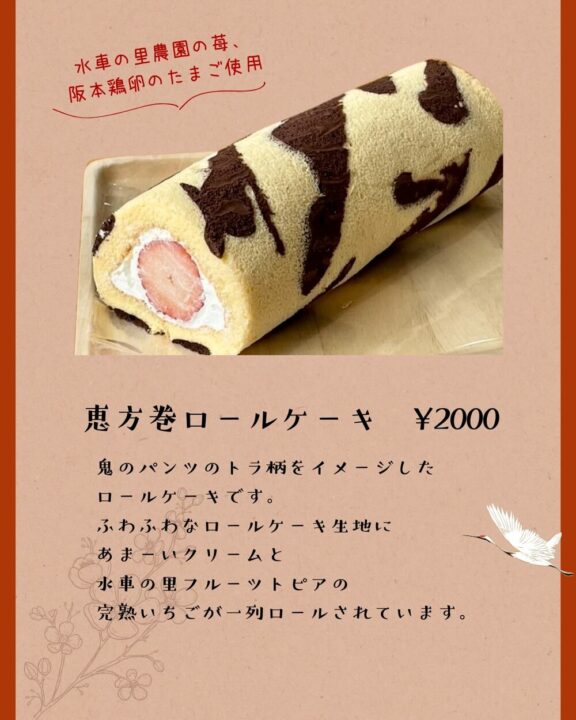 恵方巻きと恵方巻ロールケーキは、節分の2026年2月3日(火)のみの受け取りとなります。