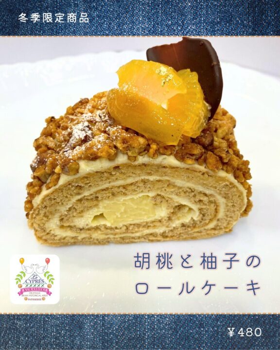 こちらは「胡桃と柚子のロールケーキ(480円)」🍰