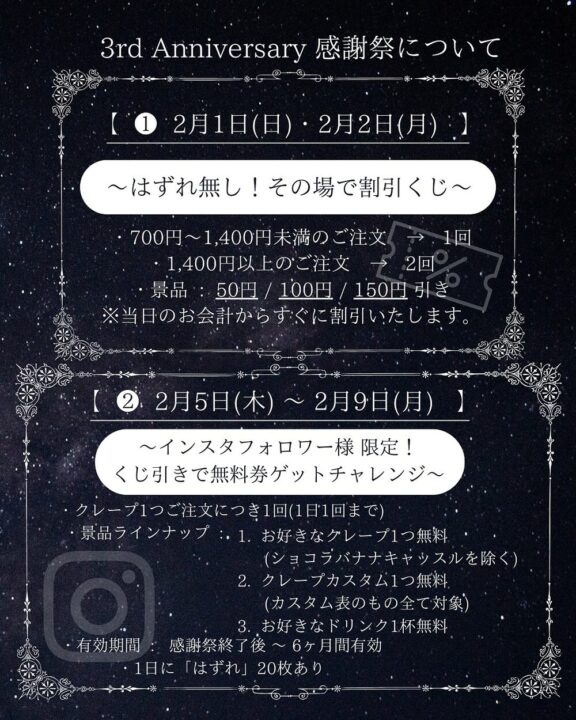 終了までに急げ!夜限定クレープ店が3周年感謝祭を実施🤩