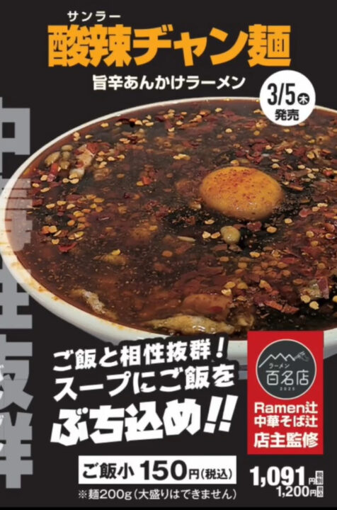 2026年3月5日(木)から登場予定の「酸辣ヂャン麺(1200円)」も「麺や寛」ファン注目の新メニュー!!