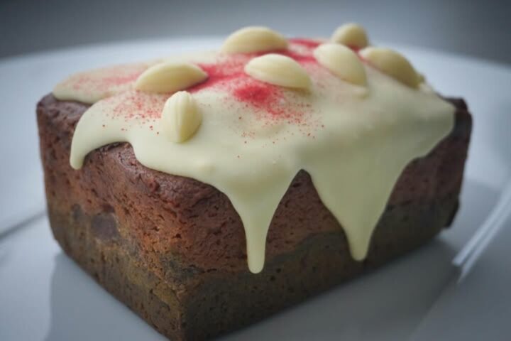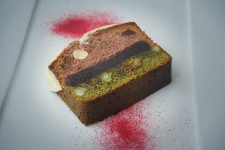 Bean to bar chocolateのこだわりホワイトチョコレートに、甘酸っぱいラズベリーと濃厚な抹茶を合わせた藤戸餡入りケーキです🍫