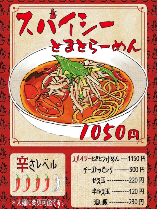 総社市で話題の『トマトラーメン🍅』にスパイシーな新メニュー登場🌶