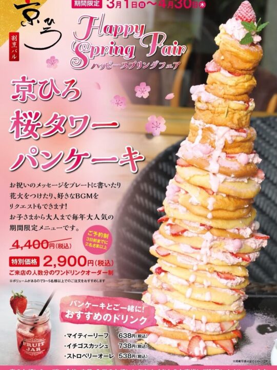 4月30日までの期間限定で提供されているのが「京ひろ 桜タワー パンケーキ」🍓。